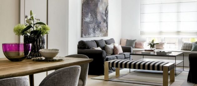 Almudena Rebuelta Domecq – We like to use a few unique and memorable pieces and take care of all the elements needed to make that particular selection stand out. If we use a piece with lots of personality, the rest of the room is very neutral. Another way to integrate the furnishings is with colorful cushions that reflect the art in the room. The art itself is the colour.